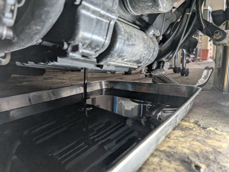 車体が低いので、薄いバットを敷きましたが、オイルが結構ギリギリまで…羊羹を作るとき状態ですwww
