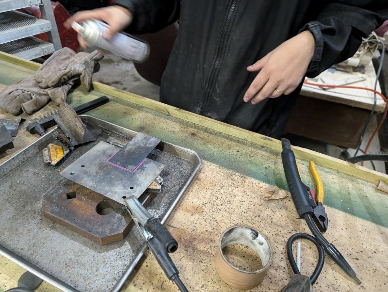 穴をあけたり、溶接(半自動)で組み付けて♪