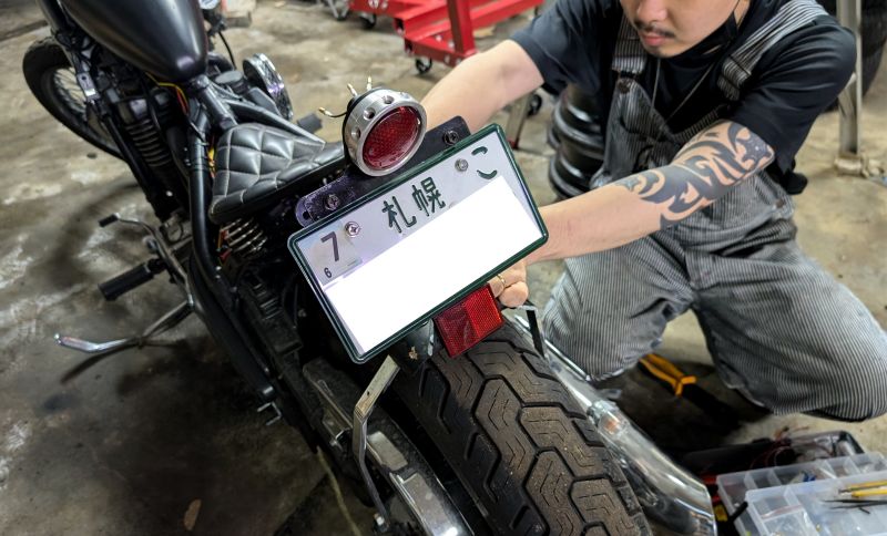 この年式のバイクは ナンバー角度は明確に決まっていない(…はず)が、「見やすい状態か?」と、検査員の判断によって変わるらしい…?!