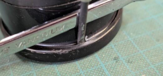 接合部分(中央穴の少し外側)と、ほぼ同じ径のドリル刃で、「ウィ」「ウイ」