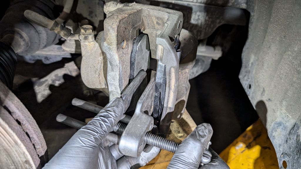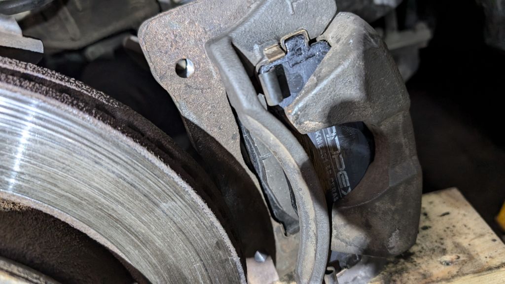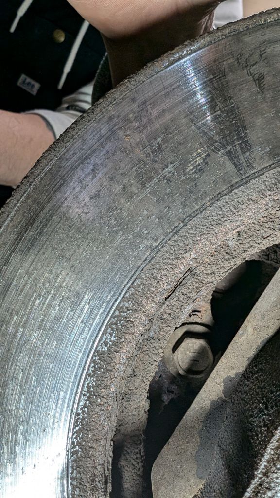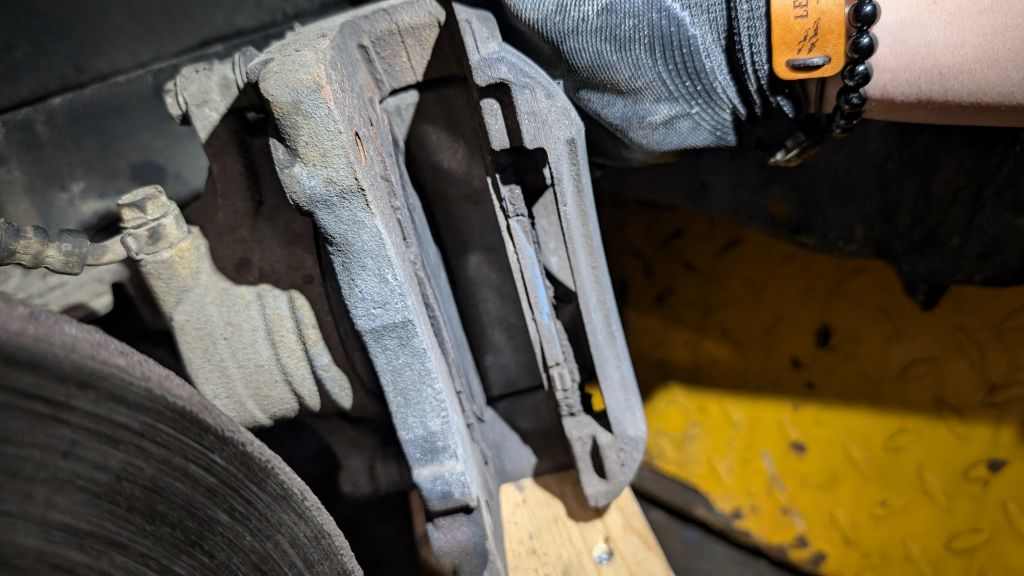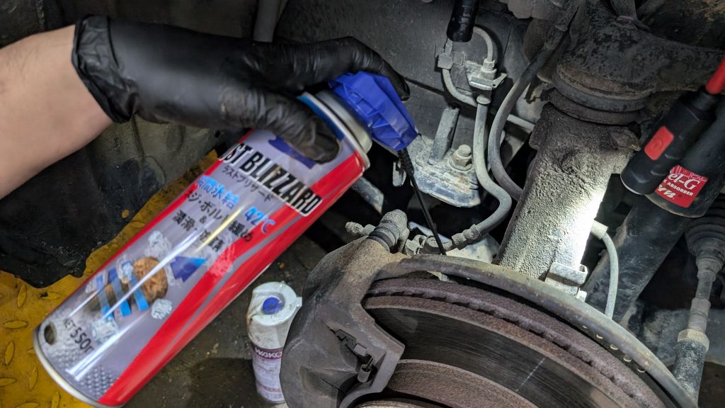 タイヤを外して、キャリパーを留めているボルトを外そうとするも、固着が酷くてナメそう…とビビるw