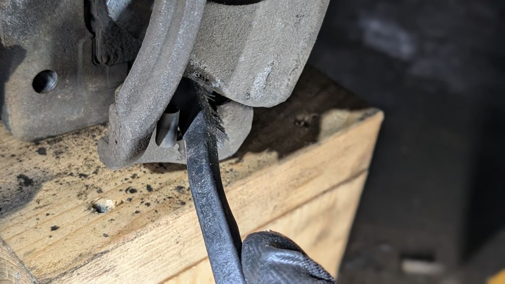 ワイヤーブラシでゴシゴシ掃除~ピストンシリンダーをキャリパーピストンツールで戻し~ブレーキグリス塗~で♪