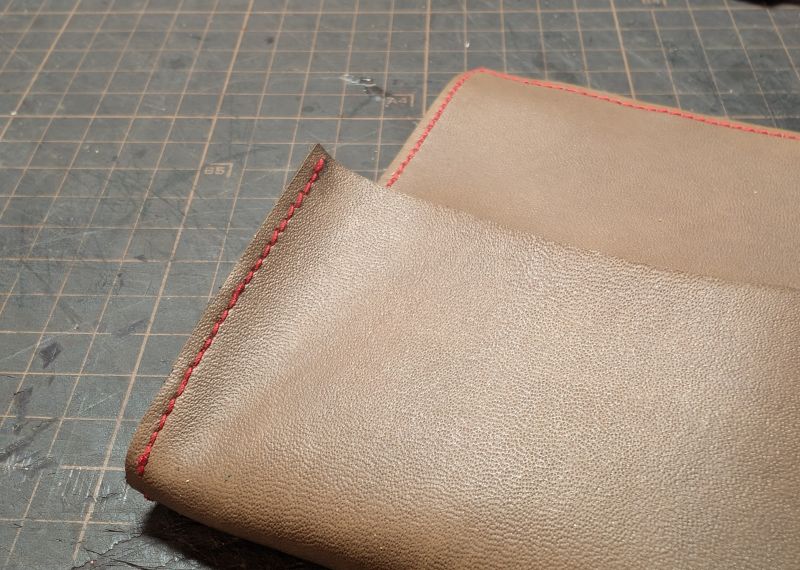 縫いのテストなので、裏地やコバ面の処理等は考慮していませんwww