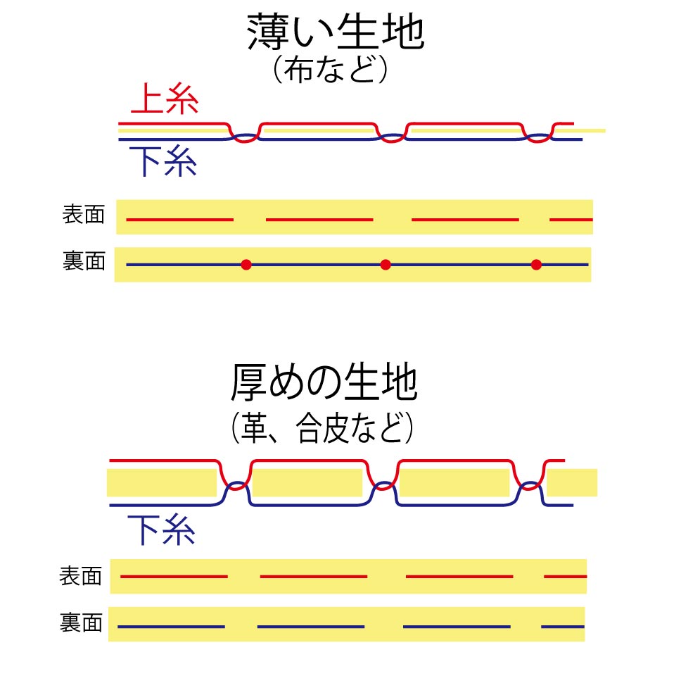 下糸(表側、縫い裏)はステッチが乱れている箇所がありますので、糸調子や、押さえ、送り歯の高さ等、微調整が必要ですね?!