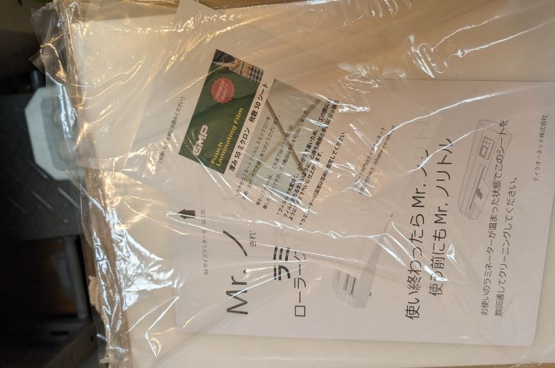 とはいえ、一般的な厚さ(100u)ではバリバリになりそうなので、ウチにある中では1番薄い、50uのラミネートで試します♪